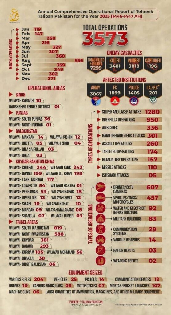 According to its annual report, the TTP has killed 3500 Pakistani Security Personnel in 2025.