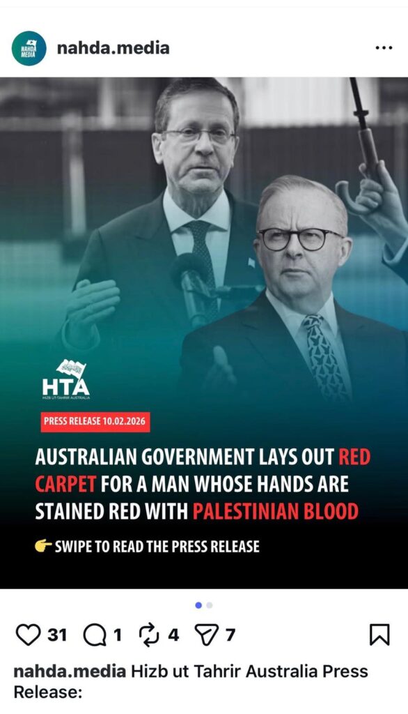 Wissam Haddad alias Abu Ousayd first posted a graphic on February 9, 2026, complaining that the $10-$30 million the Australian government spent on Herzog’s visit could have been put to better use for the people, funding, for example, medical staff and mental health care for thousands.