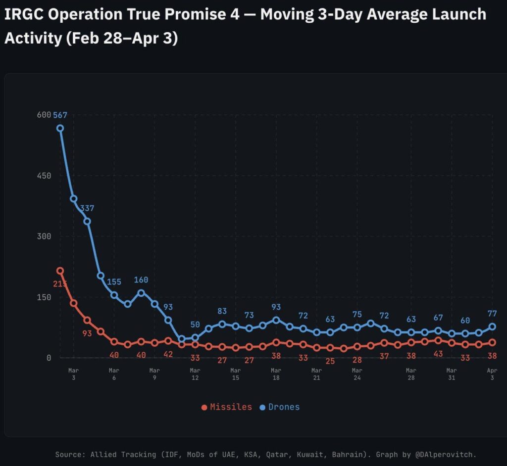 IRGC Operation True Promise 4 – Avg launch activity from Feb 28-Apr 3